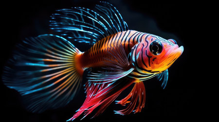 An AI generated illustration of a beautiful colorful fish on a dark background