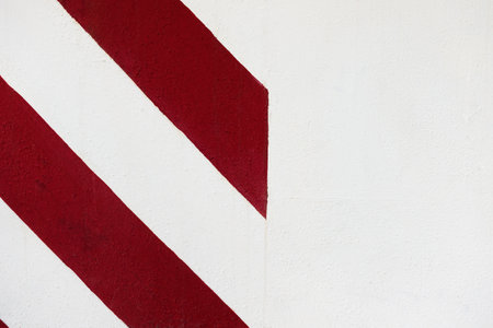 Abstract geometric wall texture background. Old white stucco cement wall painted with diagonal red stripes
