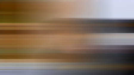 Horizontal motion blur abstract background with soft streaks of brown, orange, blue, and white.
