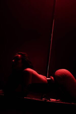 Female striptease on the pole in a nightclub