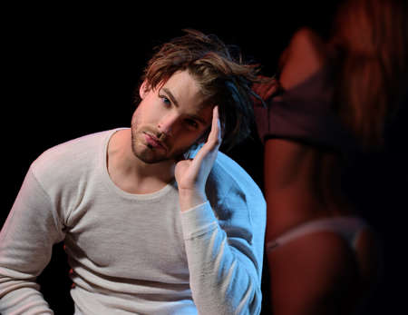 Erotic games, sex, orgasm, girl and man. erotic games of couple in love, copy space