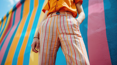 Colorful Striped Fashion: Close-Up of Summer Outfit in Vibrant Urban Setting