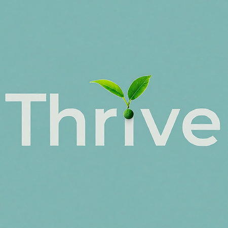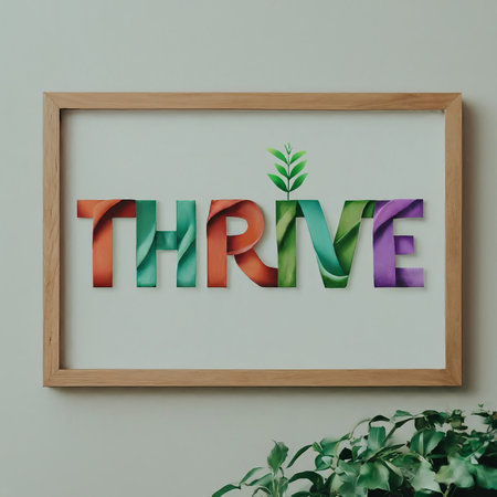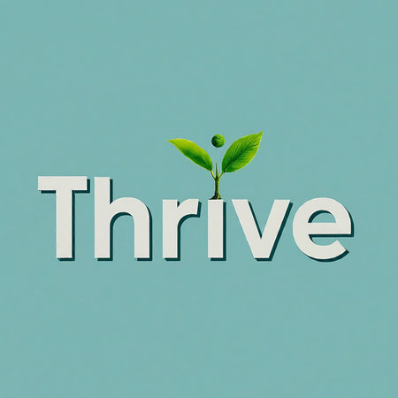 Captivating sunrise view featuring the word 'THRIVE' displayed in blocks, symbolizing growth and success in an urban landscape. A perfect image for motivation.