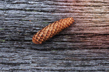 Two siberian pine cons on wooden table background