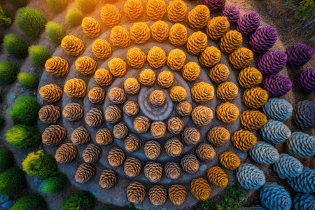 pine cones arranged in a decorative pattern, created with generative ai