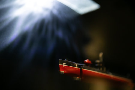 Flashlight isolated on dark background (Flashlight and a beam of light in darkness)