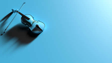 Blue classic violin on pink plate under spot lighting background. 3D sketch design and illustration. 3D high quality rendering.