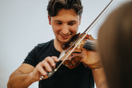 Girl playing the violin classical music, detail, Macro, studio lighting