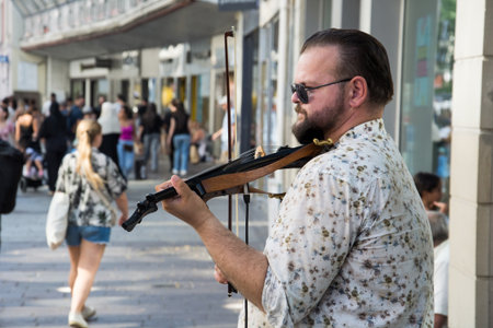 Mulhouse - France - 24 august 2024 - Portrait of musician playing violin in the street