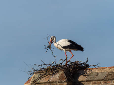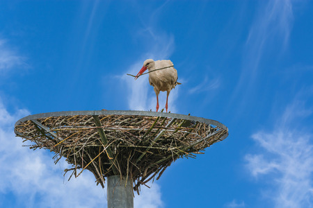 A white stork nest-building by