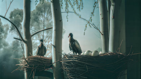 couple loving storks are on the nest, wildlife