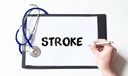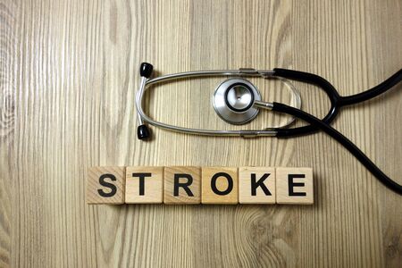 Stroke word with stethoscope on wooden desk background