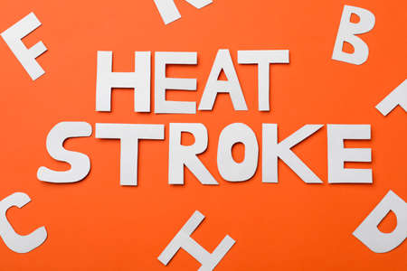 Words Heat Stroke made of paper letters on orange background, flat lay
