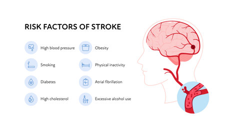 infographic showing the FAST stroke signs facial droop, arm weakness, speech difficulty, and time to call emergency services vector illustration. Medical science educational illustration