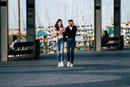 Tel Aviv Israel February 20, 2020 View of unidentified people walking in the streets of Tel Aviv during a sunny day in winter