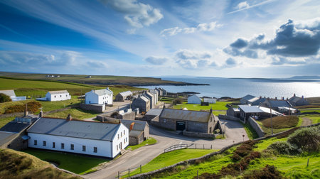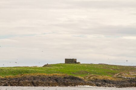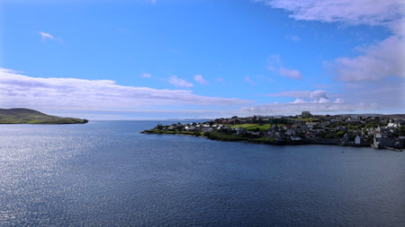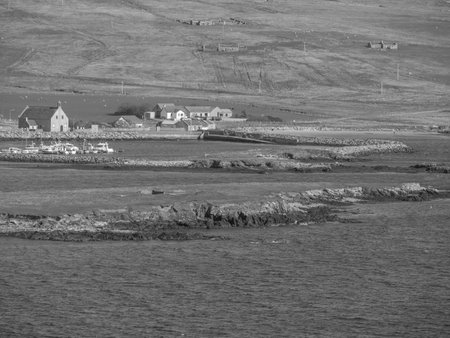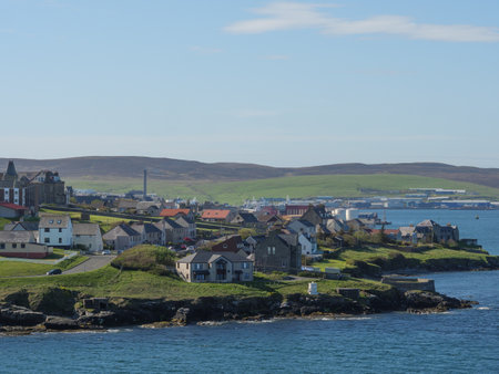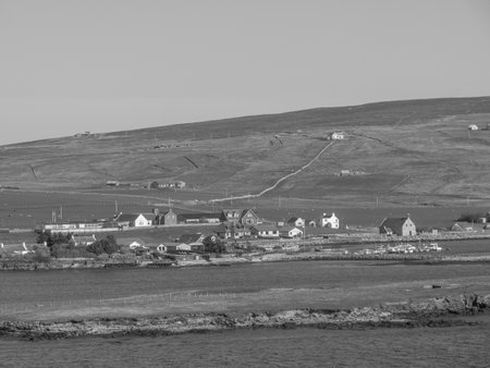 Beautiful landscape and buildings on the island of Bressay in the Shetland Islands in Scotland. View from Lerwick