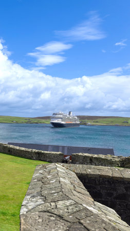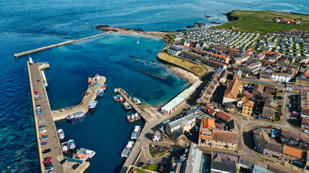 St Margarets Hope, UK - October 05, 2022: Port and ferry scene, in St Margarets Hope, Orkney Islands, Scotland, UK