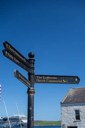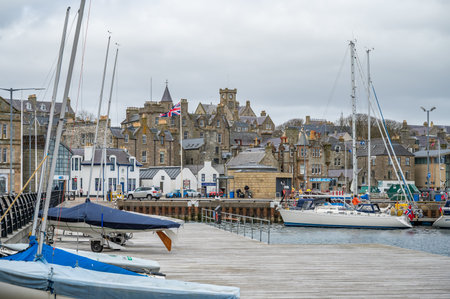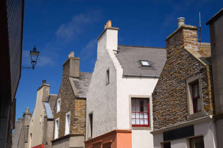 Lerwick, a coastal town in Shetland Scotland, UK, with scenic medieval houses.
