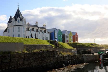 Lerwick, a coastal town in Shetland Islands in Scotland with scenic houses.