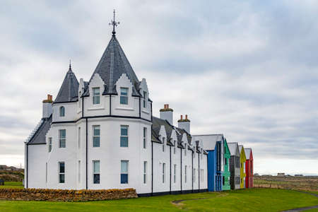 view of colored houses in John O 'Groats village in Scottish Highlands