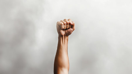 Arm with raised clenched fist on white background. Protest, strength, and revolution concept