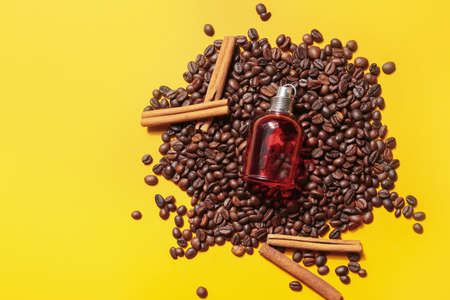 Bottle with cosmetic oil or essential aroma oil.