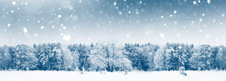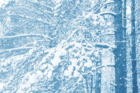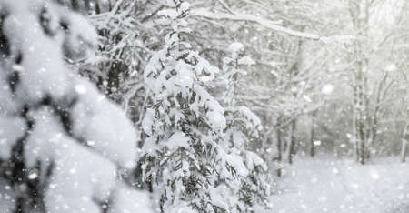 Snowing, holidays and environment concept - Winter abstract background, beautiful trees covered with snow, Christmas holiday nature backdrop, snowy cold season weather in forest, landscape design