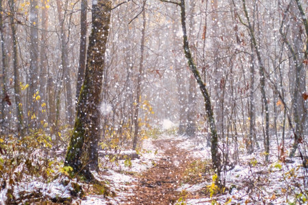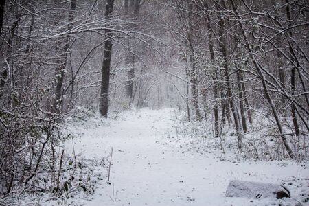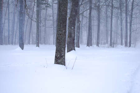 A winter blizzard in the forest