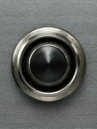 A round metallic doorbell button is mounted on a textured gray surface, showing a sleek design that enhances the entryways modern look.