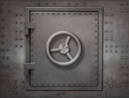 Old security safe box doorFront view of bank vault entranceMetal door for background or wallpaper.