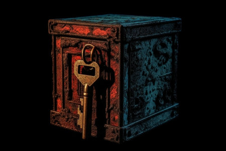 safe deposit box, with combination lock and key visible on the outside, created with generative ai