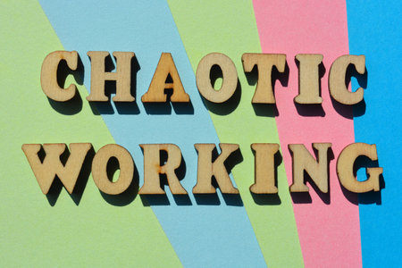 Chaotic Working, words in wooden alphabet letters isolated on background as banner headline