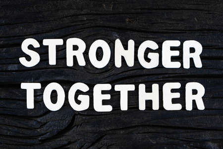 Stronger Together words on dark wooden background. Business, motivational and stronger together concept.