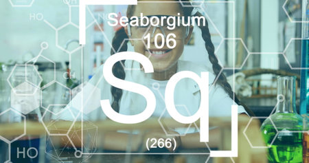 Image of chemical structures moving over schoolgirl in lab. education, development and learning concept digitally generated image.