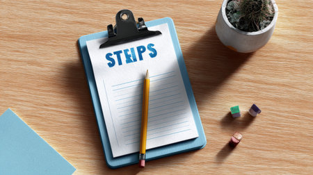 A clipboard with the word stips written on it. A pencil is sitting on top of the clipboard