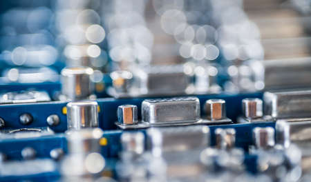 Close-up blurry metal sockets on a computer video board