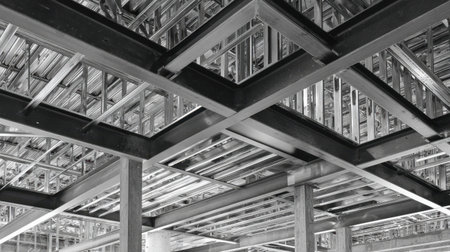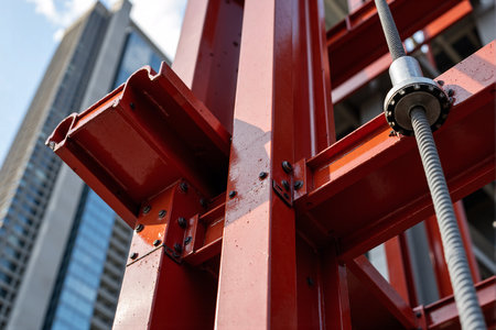 heavy industry metal steel structure connect together for high strength for bridge road support for construction engineering background