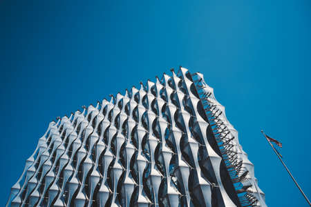 Singapore - Feb 15 2020: Abstract view of the beehives facade of the Duo Residences on Beach Road, a new iconic 49-storey residential tower in the heart of Bugis and the CBD of Singapore