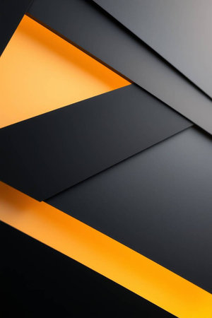 Abstract background of black and orange geometric shapes. 3d render illustration