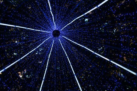 Abstract lighting on dark blue background, illuminating night decoration.