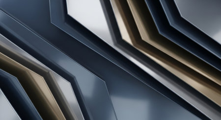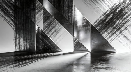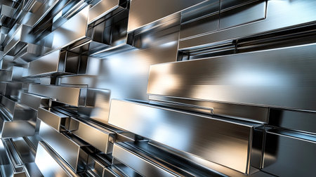 This abstract metallic composition features a stunning arrangement of shiny surfaces and reflections. Ideal for modern design, digital art, and creative projects.