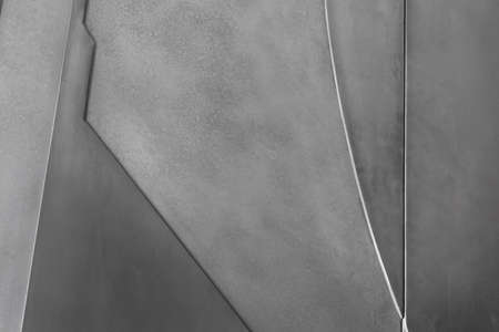 Silver metal surface with different textures, gray background.