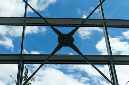 Skylight glass roof of an atrium, with geometric structure in modern contemporary architectural style