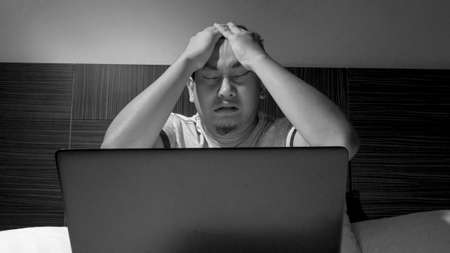 stressed or problem or crisis man at home with computer