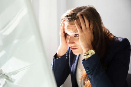 Close-up Of A Stressed Young Businesswoman Looking At Computer Screen