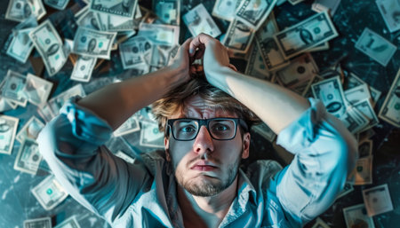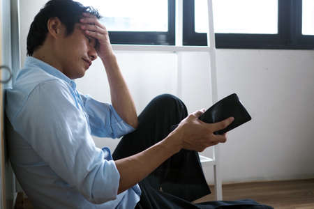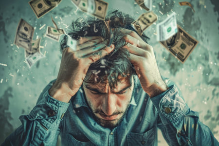 Stressed young man experiencing intense anxiety and stress due to financial hardship