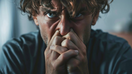 Person with anxious expression in an everyday environment generative ai