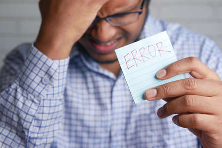 hand hold a sticky note with error text