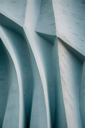 Detail of the beige wavy line facade backdrop