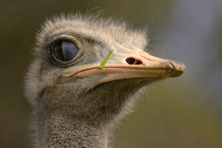 ostrich head with grass sticking out